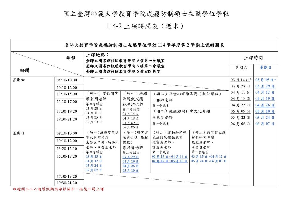 114學年度開課與上課時間一覽表